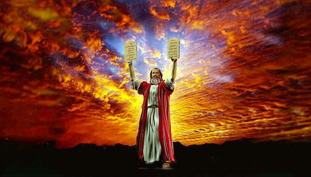 | Moshe dando as tábuas da lei ao povo hebreu. |